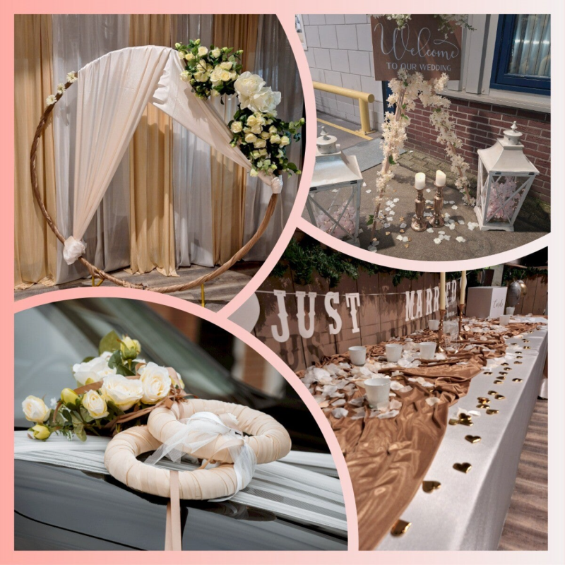 Deze mooie dag moet natuurlijk tot in detail vlekkeloos verlopen!. Juist op deze grote dag is het fantastisch als er een onuitwisbare indruk wordt achterlaten bij uw gasten, maar natuurlijk ook voor het bruidspaar zelf. Met mooie en duurzame Decoratie-Styling die kan worden gerealiseerd op locaties van de trouwceremonie, feest locatie en de trouwauto.